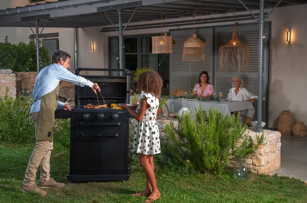 • Podpora až 10 kg plynových lahví v plně uzavřeném vozíku grilu s elegantním designem a integrovaným podvozkem s koly s aretací.