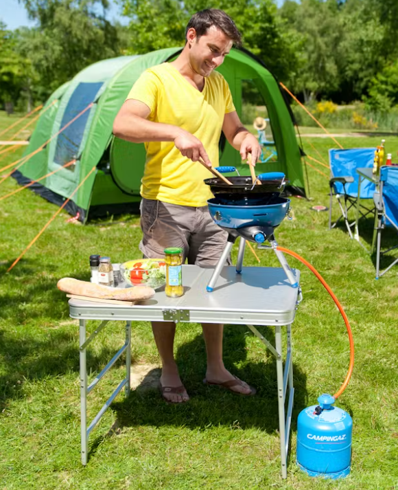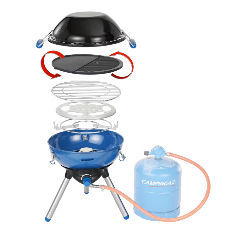 Přenosný gril a vařič v jednom. Vhodné pro dlouhodobé kempování a do karavanů. Odnímatelné nožičky a taška na uchování a přenos grilu vám pomůže spotřebič pohodlně přemístit naprosto kamkoliv. Spotřebič obsahuje drátěný rošt + oboustranný tál s teflonovou úpravou a smaltované víko, které lze využít jako pánev WOK..