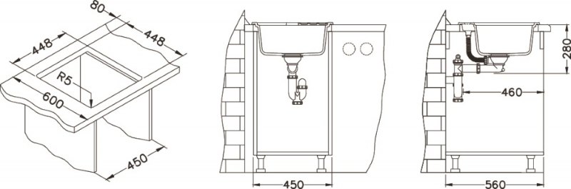Šířka skříňky od : 450 mmDélka : 465 mmŠířka : 465 mmHloubka : 180 mm