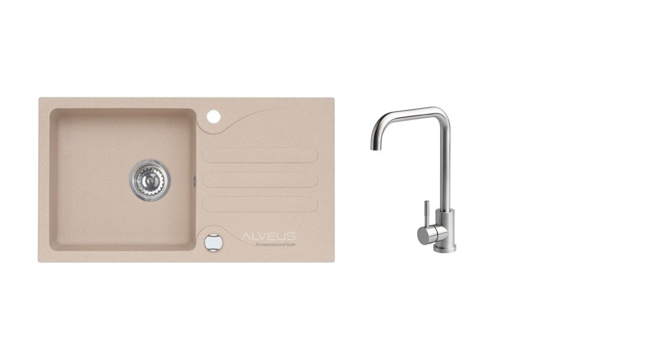 Vestavěný dřez, univerzál. Provedení : granitový dřez Vnější rozměr: 770x430 mm Rozměr vaničky: 380x370x150 mm Excentrický sítkový ventil 3 1/2 s přepadem, sifon pro úsporu místa s odbočkou na myčku. Úchyty a těsnění pro upevnění dřezu v balení S otvorem pro baterii