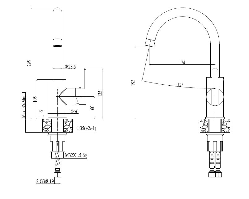 • Stojánková dřezová baterie otočná
