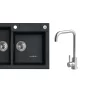 Vestavěný dřez, univerzál. Provedení : granitový dřez Vnější rozměr: 780 x 480 mm Rozměr vaničky: 340 x 400 x 180 mm 340 x 350 x 180 mm Exentrický sítkový ventil 3 1/2 s přepadem, sifon pro úsporu místa s odbočkou na myčku Úchyty a těsnění pro upevnění dřezu v balení S otvorem pro baterii