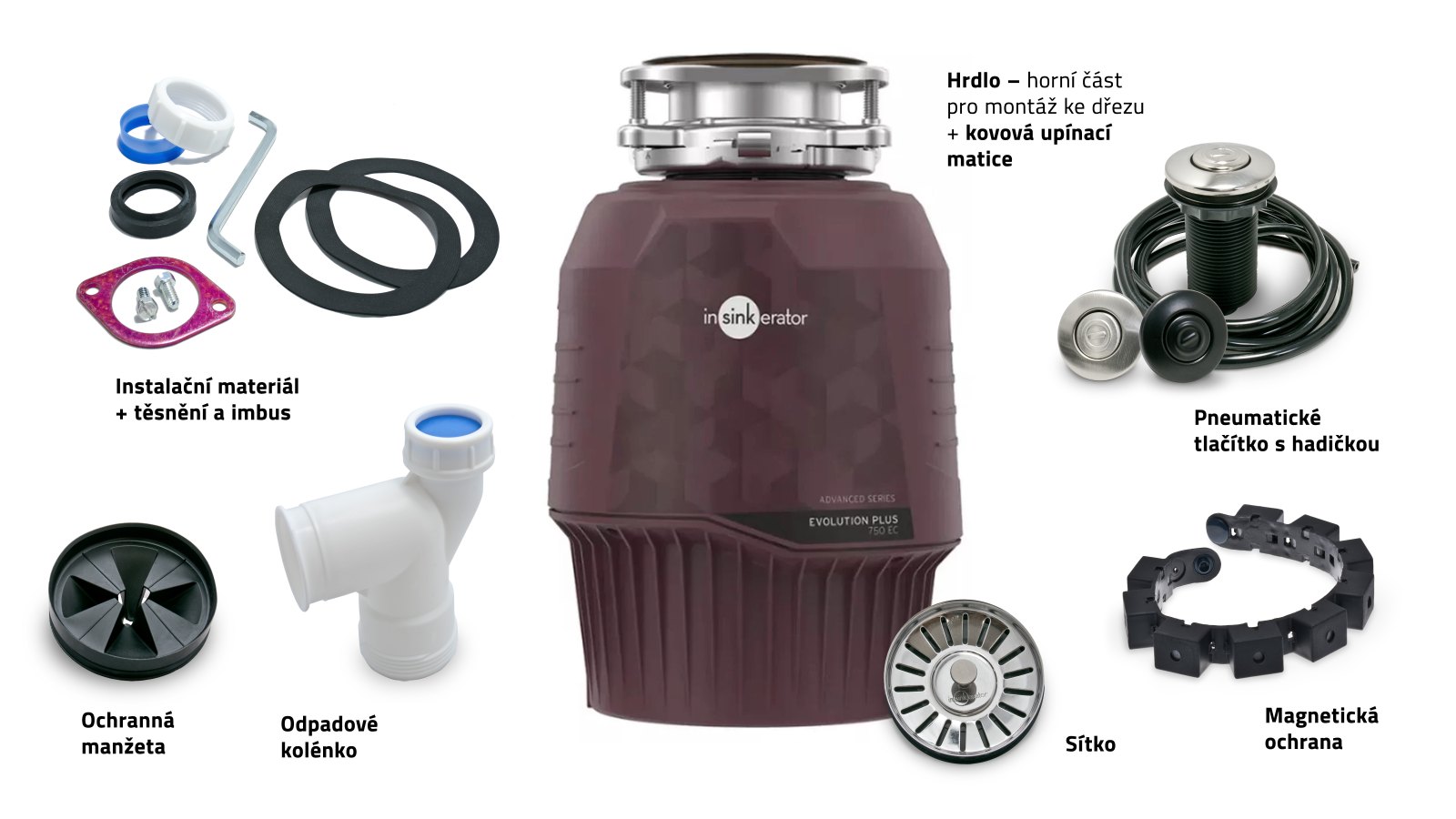 • Doporučujeme nahlédnout do záložky Doplňky a příslušenství, kde naleznete sifon a sadu k připojení přepadu, kterou oceníte při instalaci prvního drtiče do Vaší kuchyně.