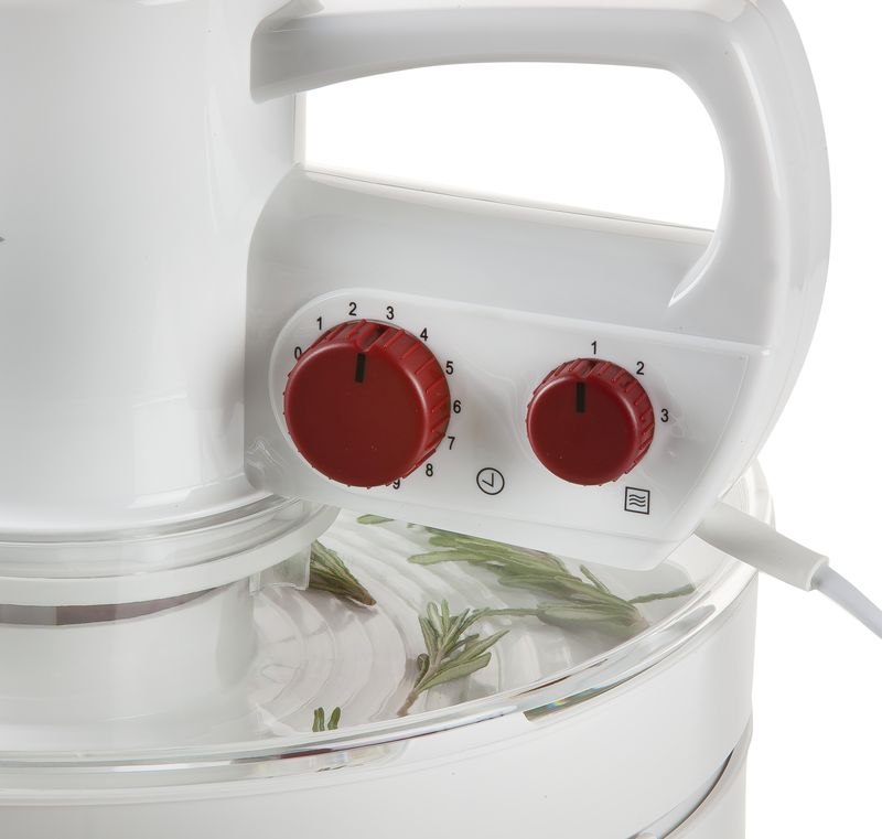 Díky třístupňovému ventilátoru, který zajišťuje rovnoměrný ohřev vzduchu v každém patře a odvětrávání každého sušícího plata zvlášť, je zaručená velmi šetrná konzervace ovoce, zeleniny nebo bylinek.