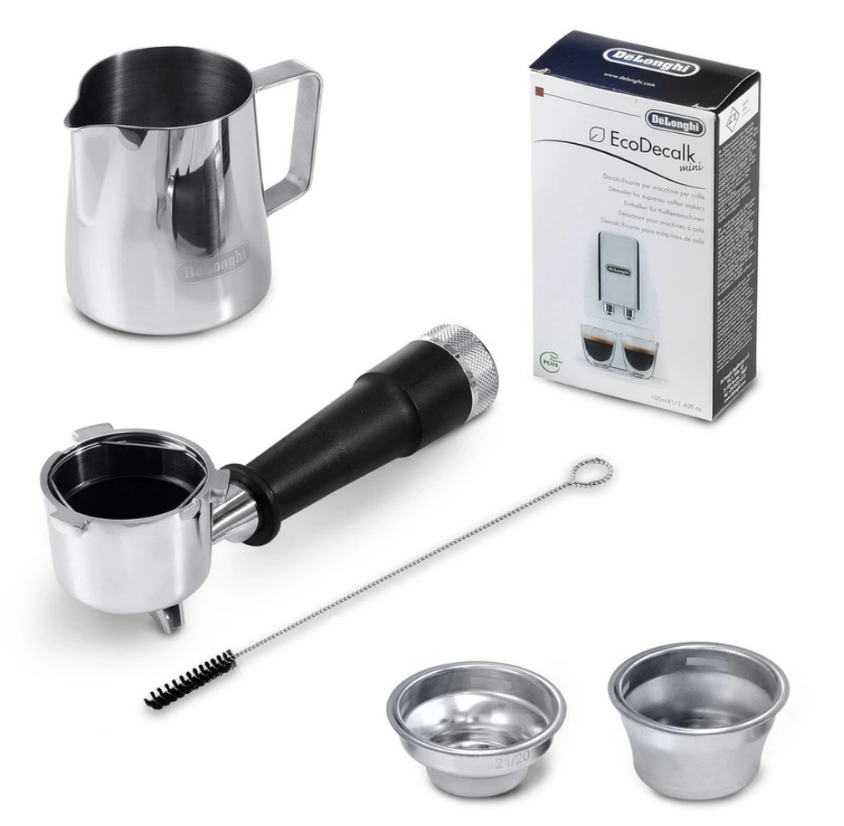 • Uvítací balíček obsahuje: konvička na mléko (300ml), odvápňovací prostředek, štěteček, sítko na jednu a dvě porce.
