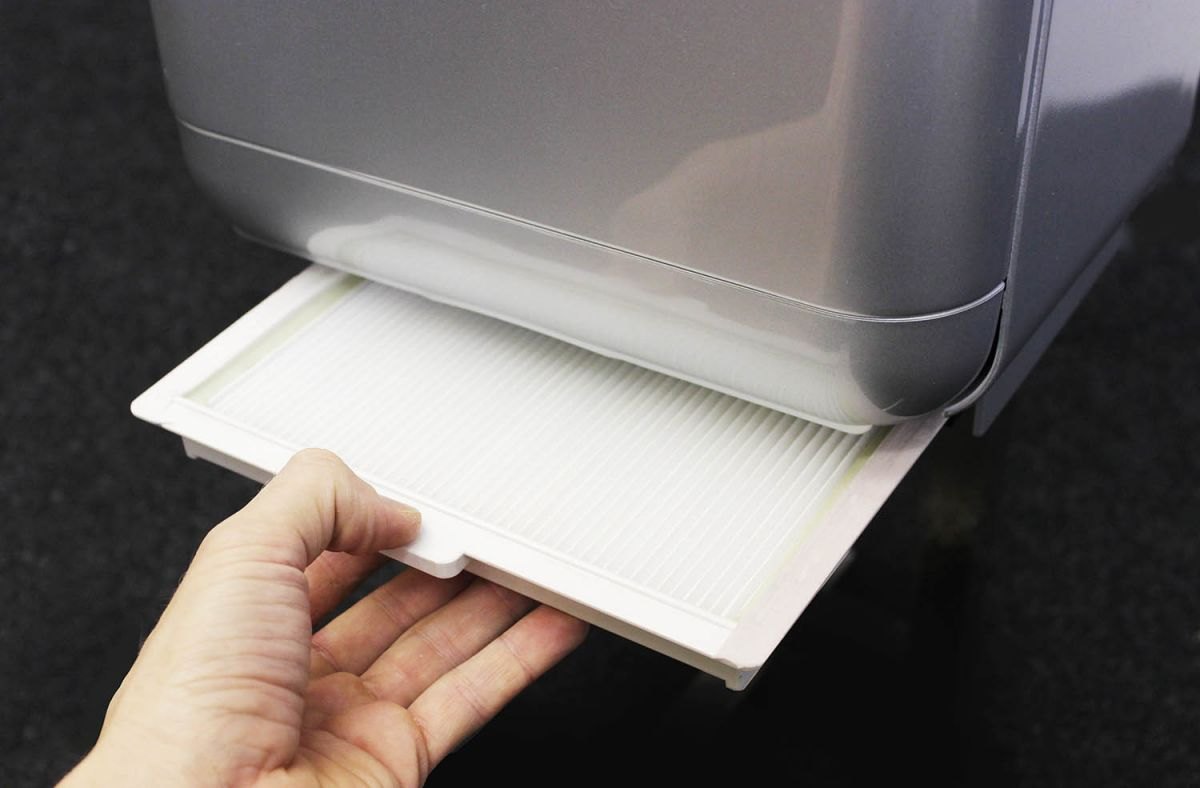 Filtr vysuňte ven z vodících drážek pomocí úchytu.
