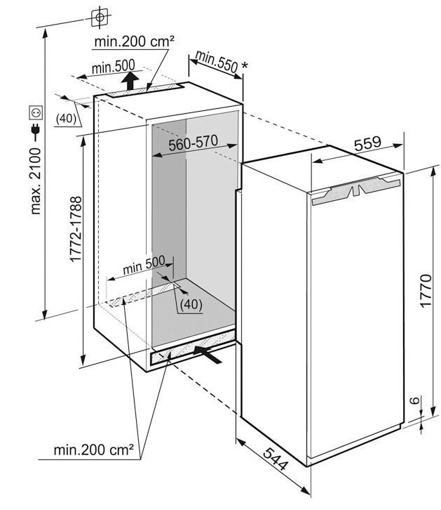 • Rozměry výklenku výška/šířka/hloubka: 177,2 - 178,8 / 56 - 57 / 55,0 cm