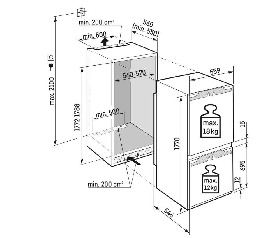 • Max. hmotnost dvířek kuchyňské linky 18/12