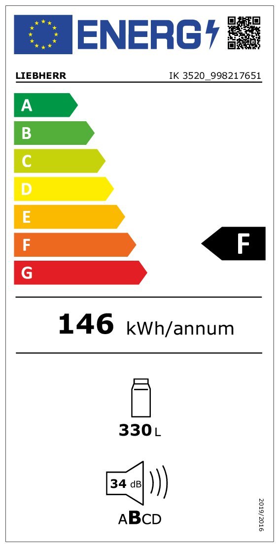 Celkový objem : 330 lEnerg. třída: FHlučnost : 34 dB