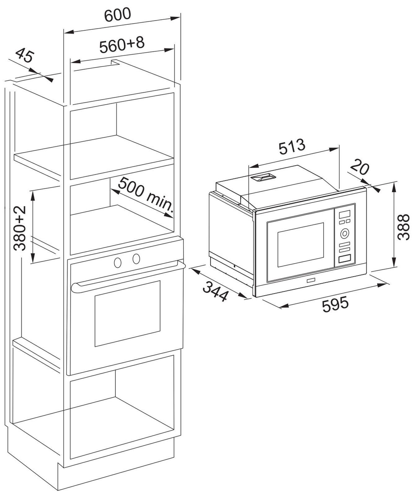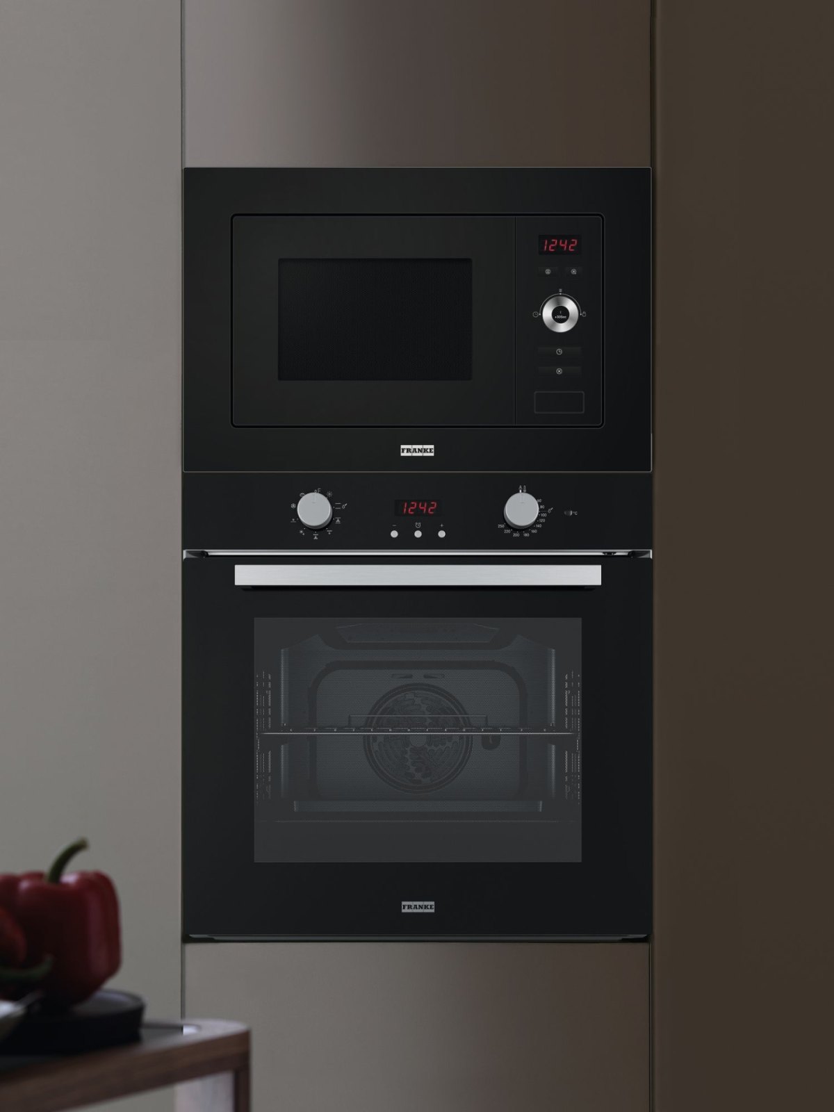 Vestavná mikrovlnná trouba řady Mythos. Provedení černé sklo. Kapacita 20 litrů. 5 úrovní výkonu. LCD červený displej + 1 Ovládací knoflík. Výkon mikrovlnného ohřevu 800 W. Příkon grilu 1 000 W. Maximální příkon 1 250 W. Vestavná výška 38 cm. Min. vestavná hloubka 50 cm. Doporučujeme v kombinaci s troubou Smart Linear: FSL 86 H BK.
