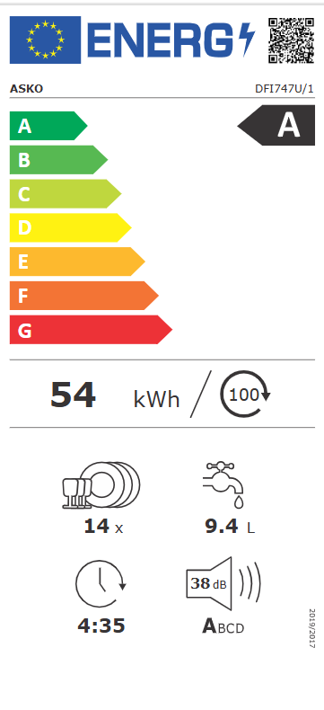| Spotřeba energie: | 0,54 kWh / cyklus |