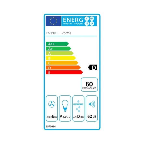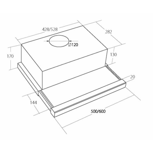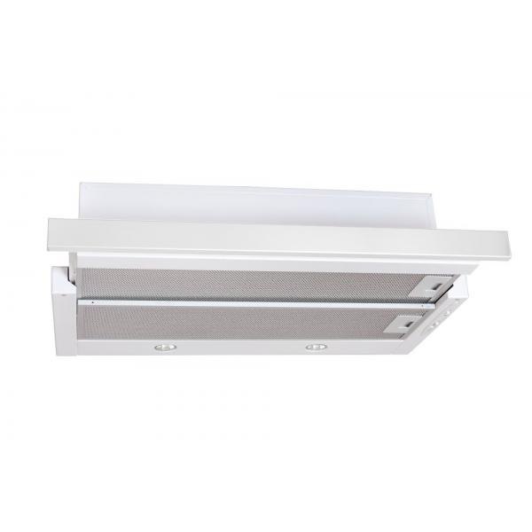 Vestavná digestoř výsuvná, šíře 50 cm, bílá s bílou lištou, max. výkon 266 m³/h (15 Pa), hlučnost Lw 54 – 62 dB(A), 3 rychlosti, odsávací jednotky mají individuálně vyvažovanou turbínu, motory jsou opatřené vratnými tepelnými pojistkami (při přetížení motoru vypne, po jeho vychladnutí opět sepne), mechanické posuvné ovládání, kovové sendvičové tukové filtry, které lze mýt v myčce, možnost práce v odtahovém i recirkulačním režimu. Výbava: úsporné LED osvětlení 2 × 2 W, zdarma zpětná klapka