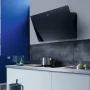 Komínový odsavač par Smart. Provedení bílé sklo, RAL 9010. Energetická třída A+. Senzorové ovládání. Štěrbinové odsávání. 3 Stupně výkonu. Intenzivní stupeň. Doběh. Pozor! Pro verzi s vnějším odtahem je nutno objednat teleskopický komínek.