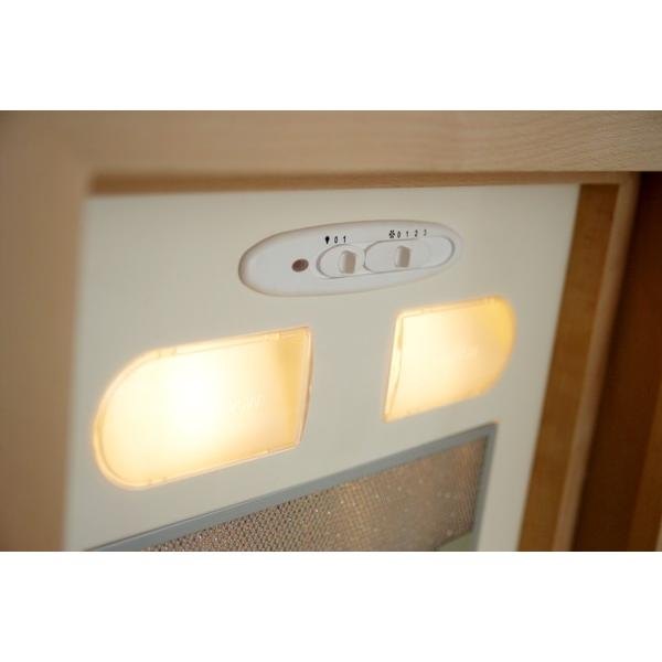Rustikální bílá komínová digestoř s rámem z nemořeného bukového dřeva -