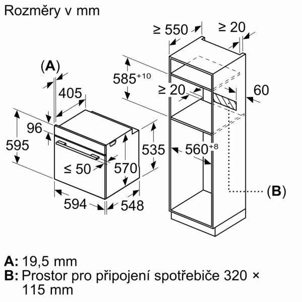 rozměry (VxŠxH): 595 mm x 595 mm x 548 mm