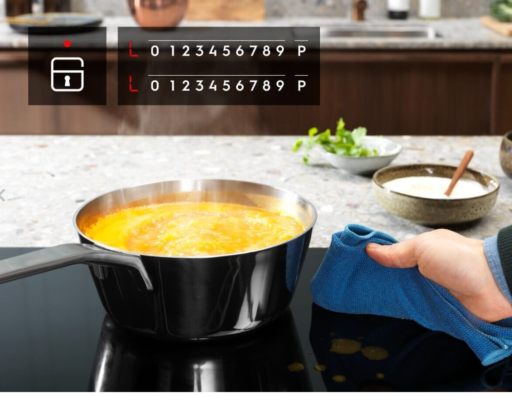 • Kontrolní funkce vypnutí zvuku, funkce POWER (Booster) = rychlé ohřátí, dětský zámek, zajištění/odjištění ovládacího panelu, indikátory zbytkového tepla