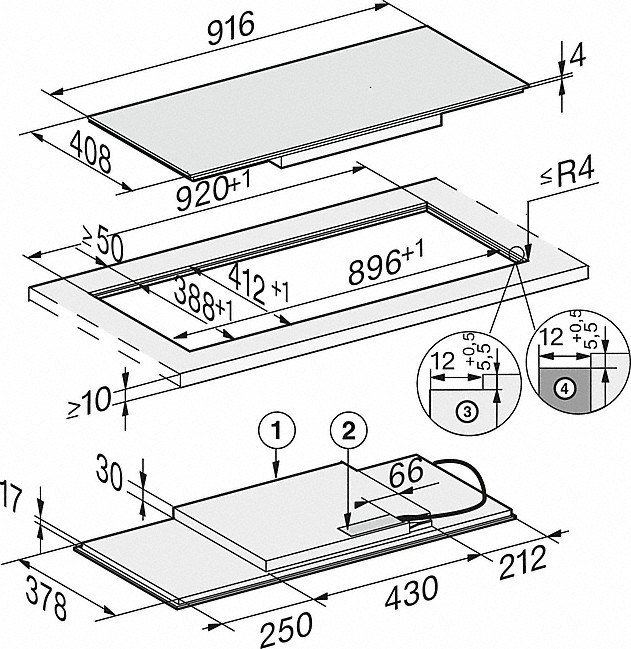 [Druh ohřevu;indukce Nezávisle na sporáku;Ano Elegantní sklokeramický povrch;Ano Barva sklokeramiky;Černá Montáž bez rámu pro zapuštění;Ano Montáž nad pracovní deskou;Ano Počet varných zón;4 Počet varných ploch;2 Maximální počet kusů kuchyňského nádobí;4 Počet;4 Velikost v mm;150x230 Max. výkon ve W;2100 Max. výkon boosteru ve W;3000 Max. výkon TwinBoosteru ve W;3650 Umístění;vlevo Velikost v mm;230x390 Max. výkon ve W;3400 Max. výkon boosteru ve W;4800 Max. výkon TwinBoosteru ve W;7300 Umístění;vpravo Velikost v mm;230x390 Max. výkon ve W;3400 Max. výkon boosteru ve W;4800 Max. výkon TwinBoosteru ve W;7300 Barva zobrazení;Žlutá Permanentní rozpoznání hrnce;Ano Rozpoznání přítomnosti a velikosti hrnce;Ano Funkce Stop&Go;Ano Paměťová funkce;Ano Kuchyňský budík;Ano Automatické vypínání;Ano Automatika předvaření;Ano Udržování teploty;Ano Individuální možnosti nastavení (např. signální tóny);Ano Miele@home;Ano WiFiConn@ct;Ano Automatická funkce Con@ctivity 3.0;Ano Snadná údržba sklokeramiky;Ano Ochrana při utírání;Ano Bezpečnostní vypínání;Ano Blokovací funkce;Ano Zablokování zprovoznění;Ano Integrovaný ochlazovací ventilátor;Ano Ochrana proti přehřátí;Ano Indikace zbytkového tepla;Ano Rozměry v mm (šířka);916 Rozměry v mm (výška);51 Rozměry v mm (hloubka);408 Vestavná výška se svorkovnicí v mm;51 Rozměry výřezu v mm (šířka) při instalaci bez rámu;896 Rozměry výřezu v mm (hloubka) při instalaci bez rámu;388 Vnitřní rozměr výřezu v mm (šířka) při instalaci se zapuštěním;896 Vnitřní rozměr výřezu v mm (hloubka) při instalaci se zapuštěním;388 Vnější rozměr výřezu v mm (šířka) při instalaci se zapuštěním;920 Vnější rozměr výřezu v mm (hloubka) při instalaci se zapuštěním;412 Hmotnost v kg;12 Celkový příkon v kW;7,300 Napětí ve V;230 Frekvence v Hz;50-60 Délka přívodního kabelu v m;1,4 Připojovací kabel;Ano ]