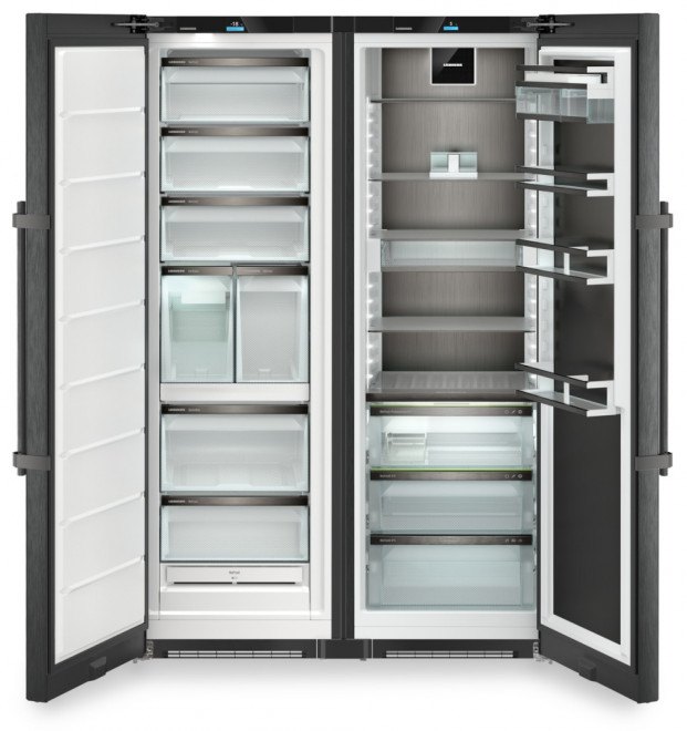 Liebherr SRBbsc 529i - volně stojící chladnička s BioFresh Professional monoklimatická, objem 386 l, HydroBreeze, Fish&Seafood, InfinitySpring, BluPerformance, LightTower, SoftSystem, Soft-Telescopic Rails, Touch&Swipe Display, integ. SmartDevice, BlackSteel
