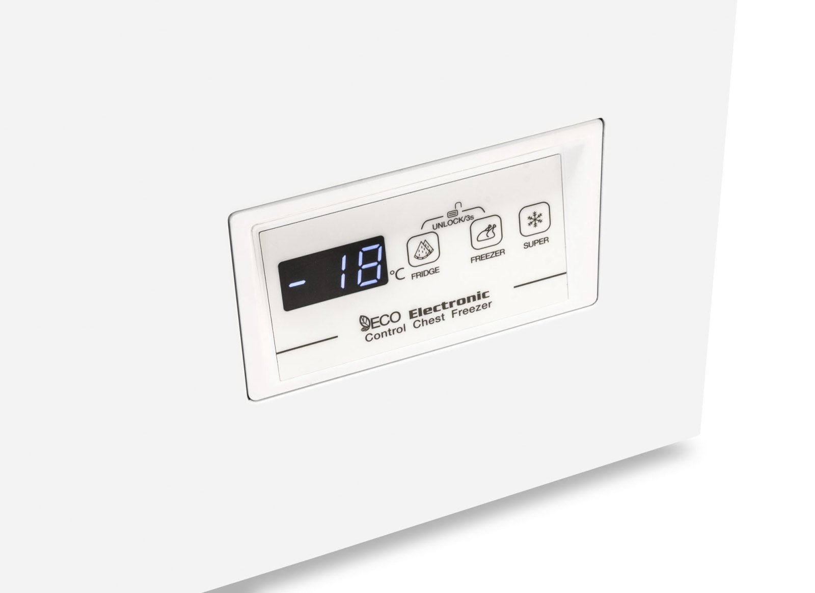 • Víko mrazničky je vybaveno nejen LED světlem, ale také madlem pro pohodlné otevírání a zavírání, kde je součástí i zámek.