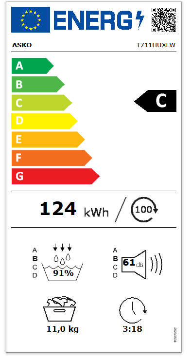 ASKO T711HUXLW je sušička prádla navržena ve Švédsku a vyrobena s mimořádně odolnou konstrukcí, která zajišťuje bezproblémový provoz po mnoho let. Nabízí kapacitu 11 kg a 20 programů pro snadné a efektivní sušení. Sušička je vybavena uživatelsky přívětivým filtrem One Motion™ Lint Filter, který výrazně usnadňuje každodenní údržbu. Technologie Butterfly Drying™ rovnoměrně rozprostírá prádlo v bubnu a zajišťuje šetrné a rovnoměrné sušení.
